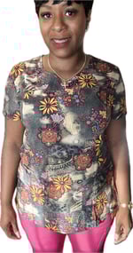 DISTRESSED PRINTED SCRUB TOP
