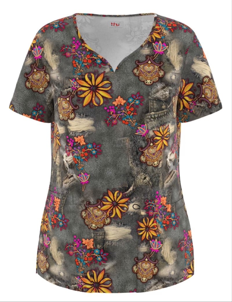 3 Pocket Notch Collar Printed Scrub Top