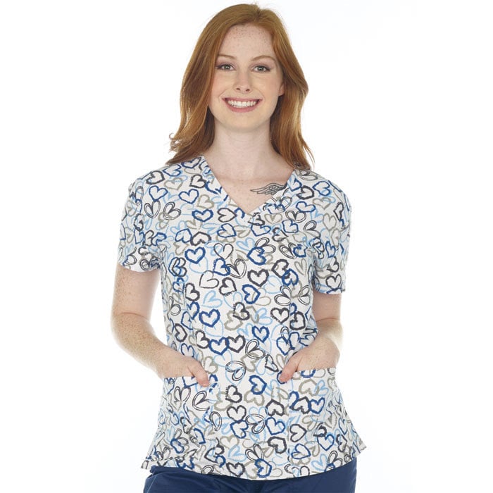 Hearts of Blue - V Neck Scrub Top