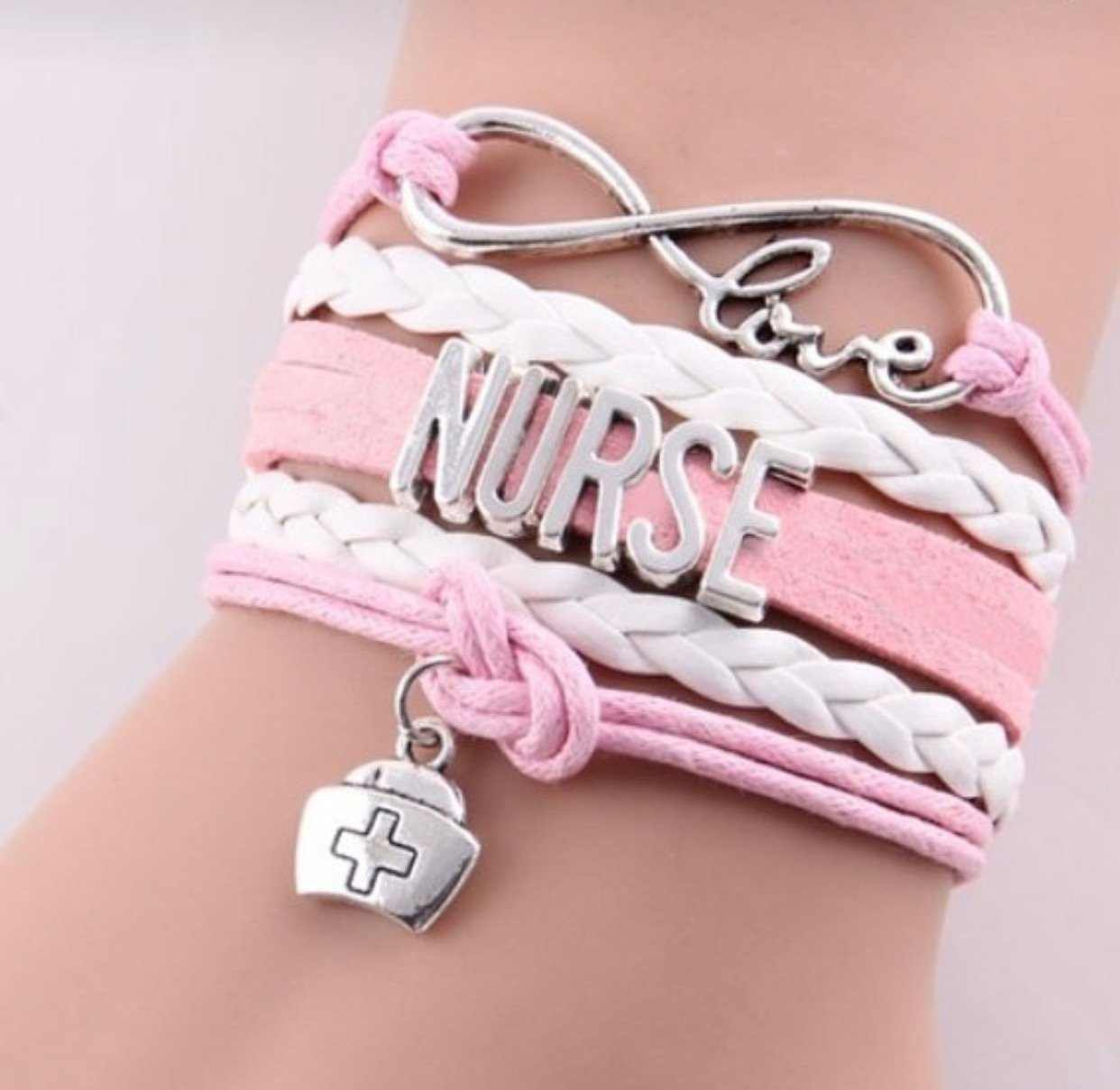 Handmade Leather Infinity Charm Love Nurse Bracelet