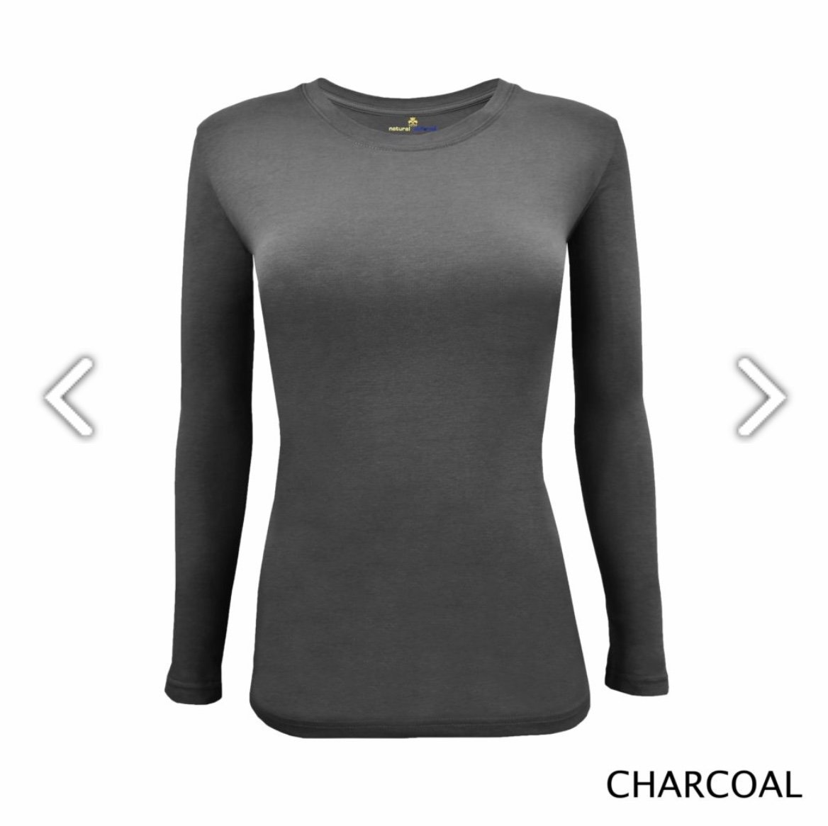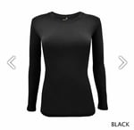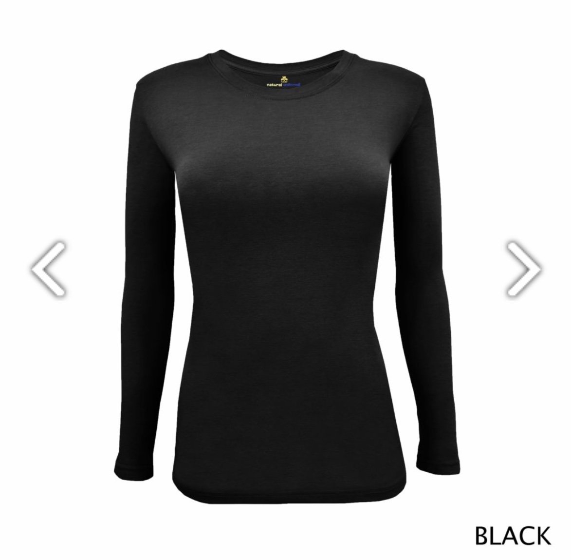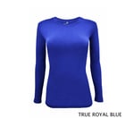 Ladies long sleeve under scrub tee has a round neck with shaped body