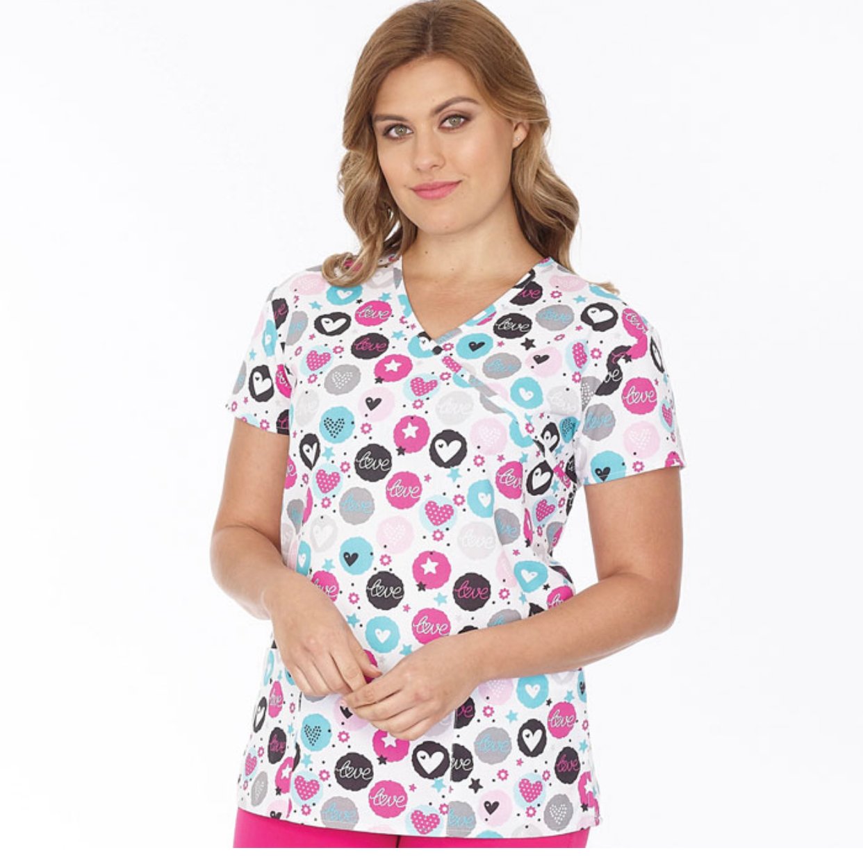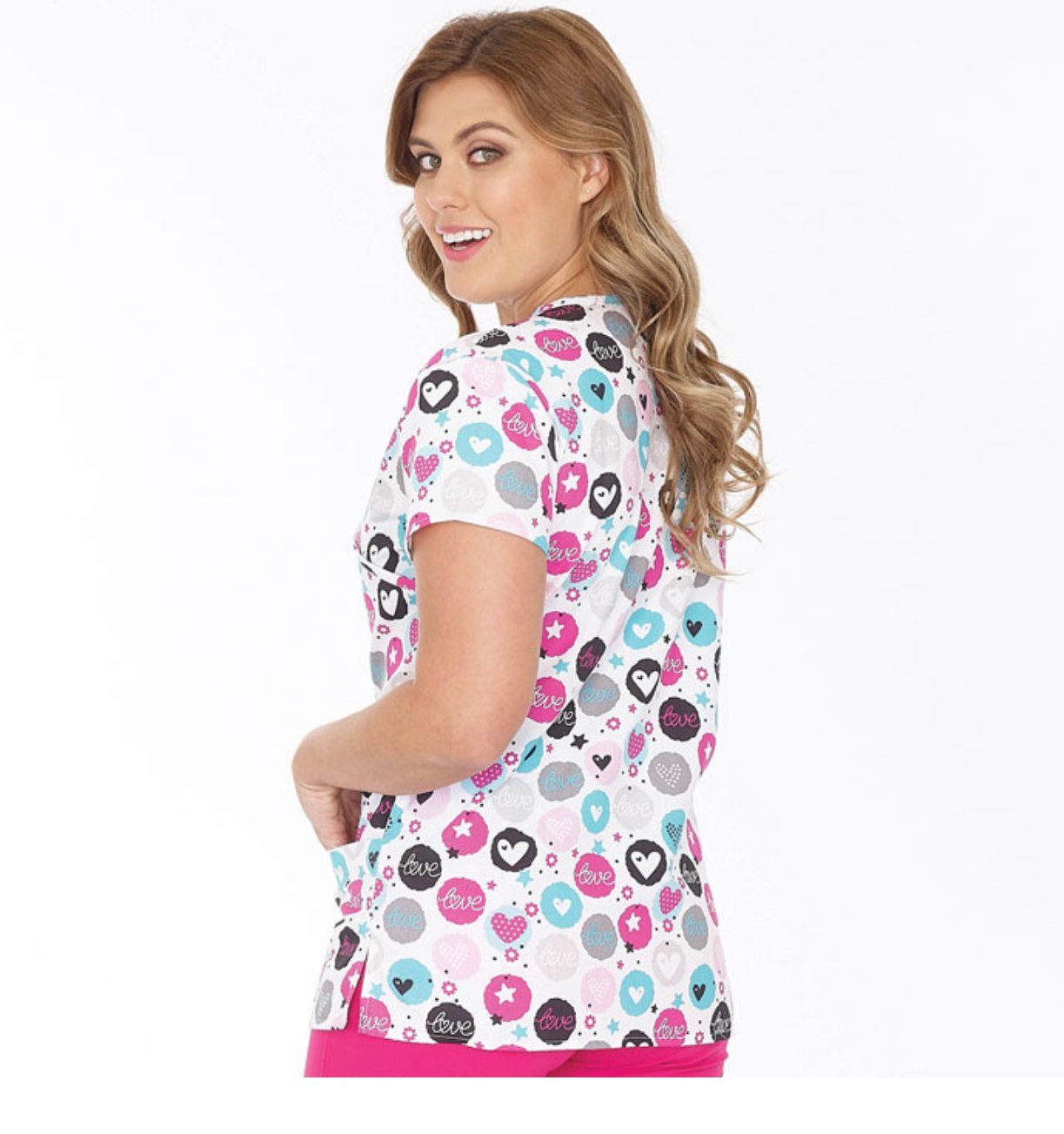 This top will surely make you feel in a "LOVE BUBBLE"! Adding this to your medical scrub wear collection will complete your everyday look. Pair with your favorite black or hot pink scrub pants to make a statement!