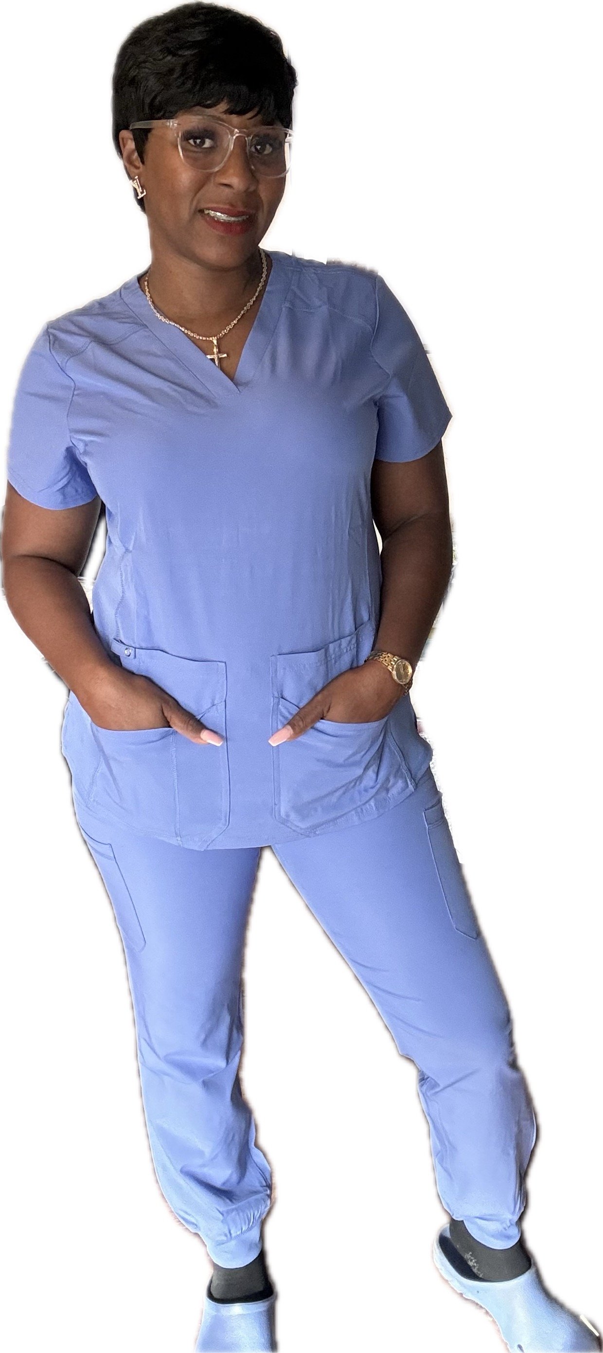4 pocket V-Neck with side panels