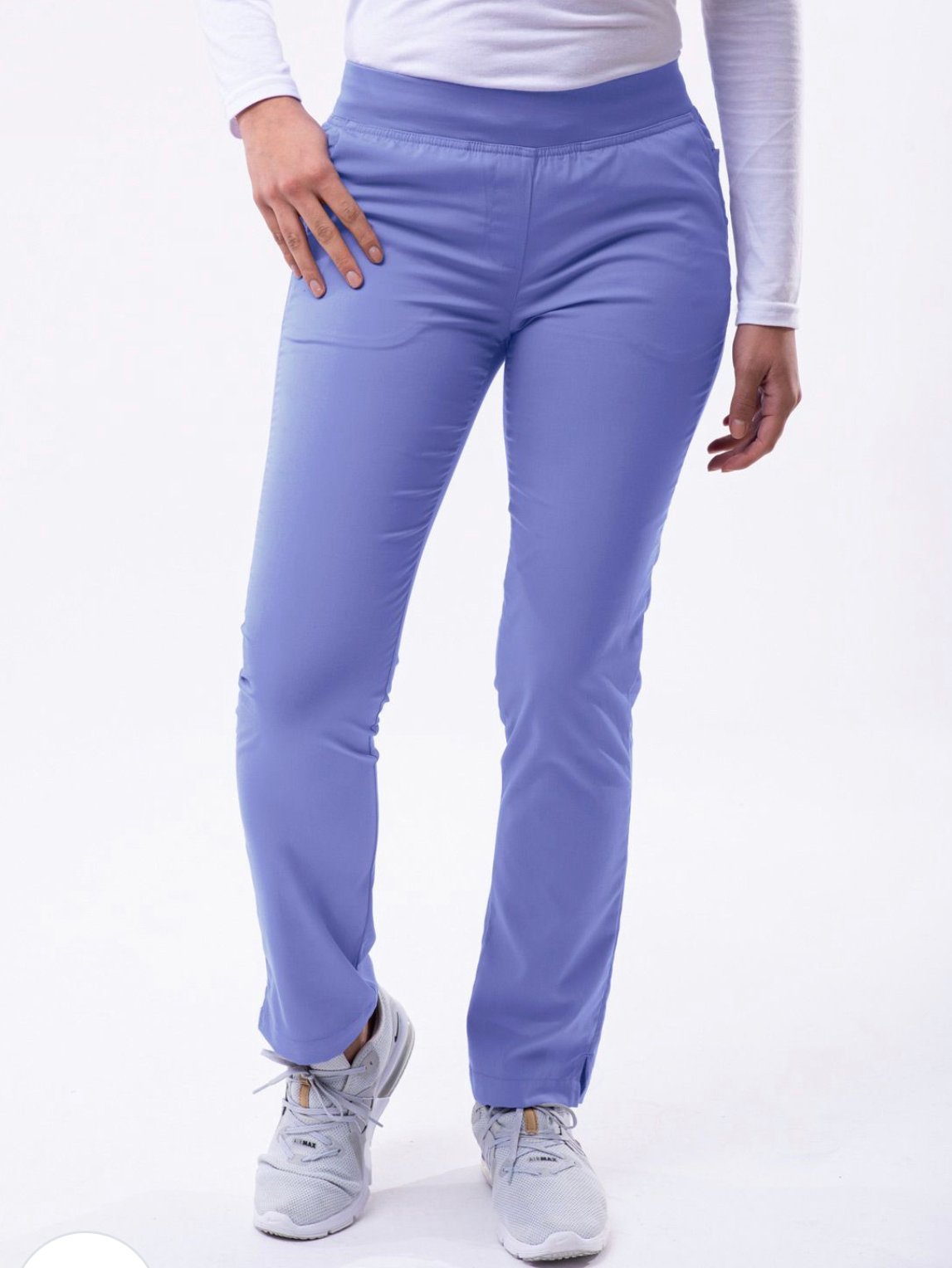 For a skinny fit and easy everyday style, our tailored skinny pants are a great professional go-to. These comfortable scrub pants sit right below the natural waist. With multiple pockets made for all device sizes, breathable side vents, and a lie flat yoga waistband for comfort, this effortless style takes the modern working woman through her day with ease.