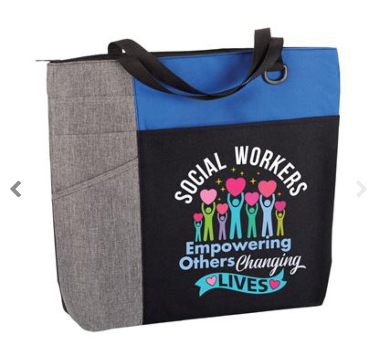 Plenty of pockets plus contemporary color-blocking make carrying essentials stylishly organize; Large zippered main compartment; roomy front slip pocket can hold a tablet; 3 Side sleeve pockets hold phone, pen, water bottle, umbrella, etc.; Handy key clip near handles; 28" reinforced webbed carry handles; 600 denier polyester/polycanvas
